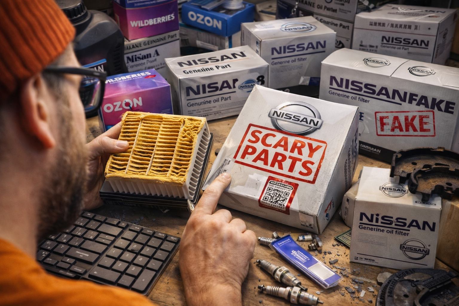 Возьмём для примера условный Nissan. Ничего экзотического: не спорткар, не раритет, обычная массовая иномарка. Казалось бы — деталей море, бери не хочу. На практике начинается квест. Один и тот же артикул может существовать в трёх вариантах: настоящий, «с завода, но не совсем», и такой, от которого даже коробка пахнет тревогой.